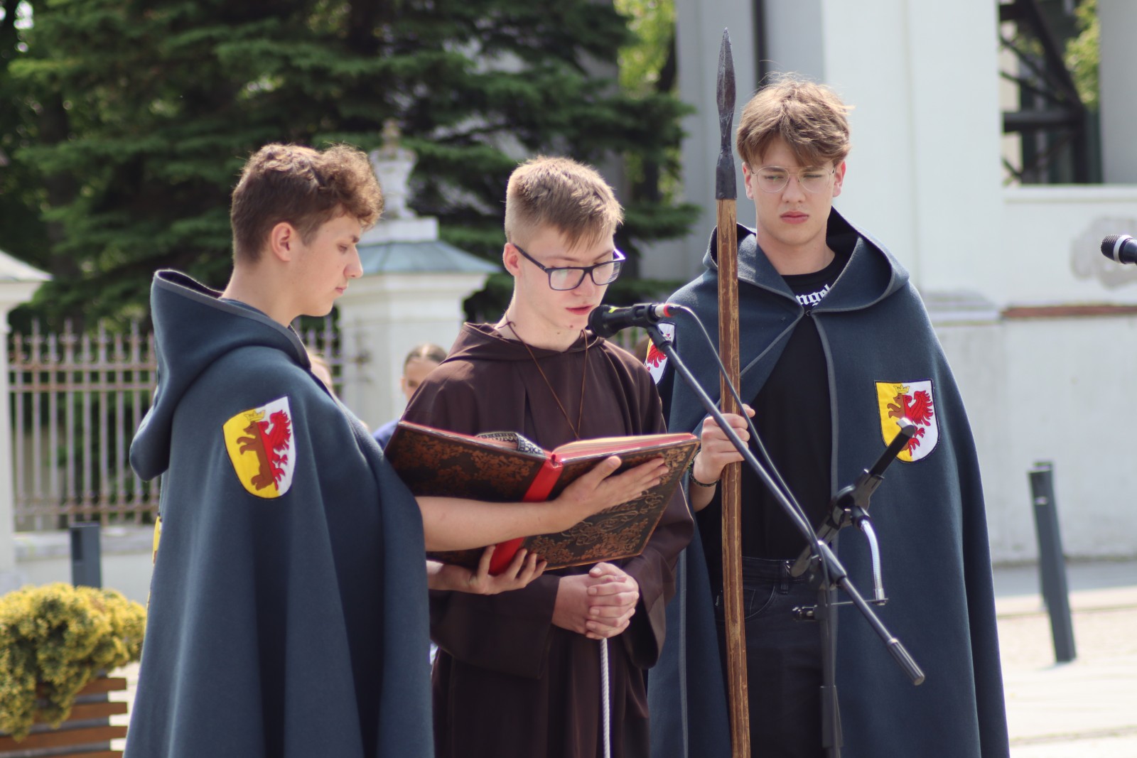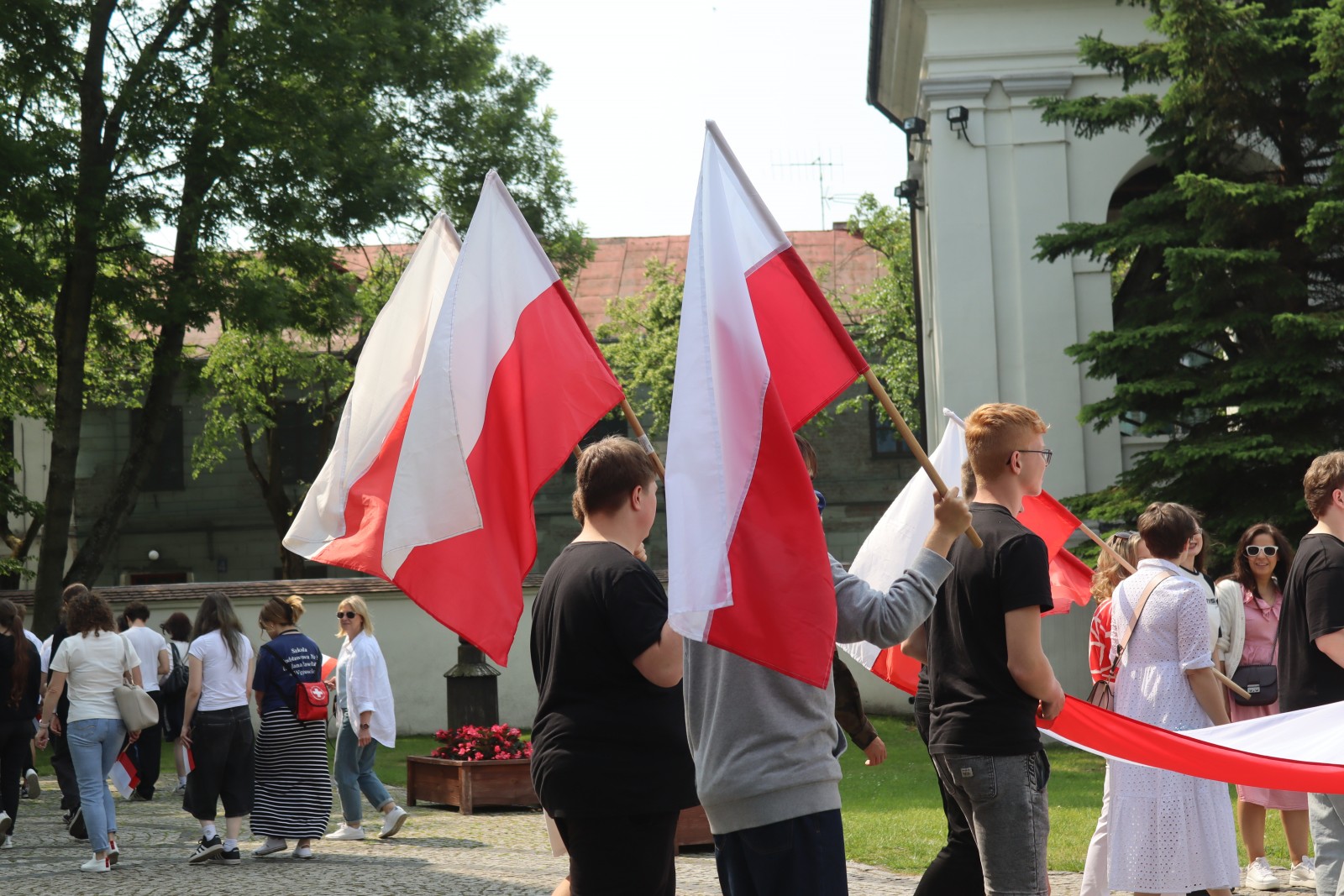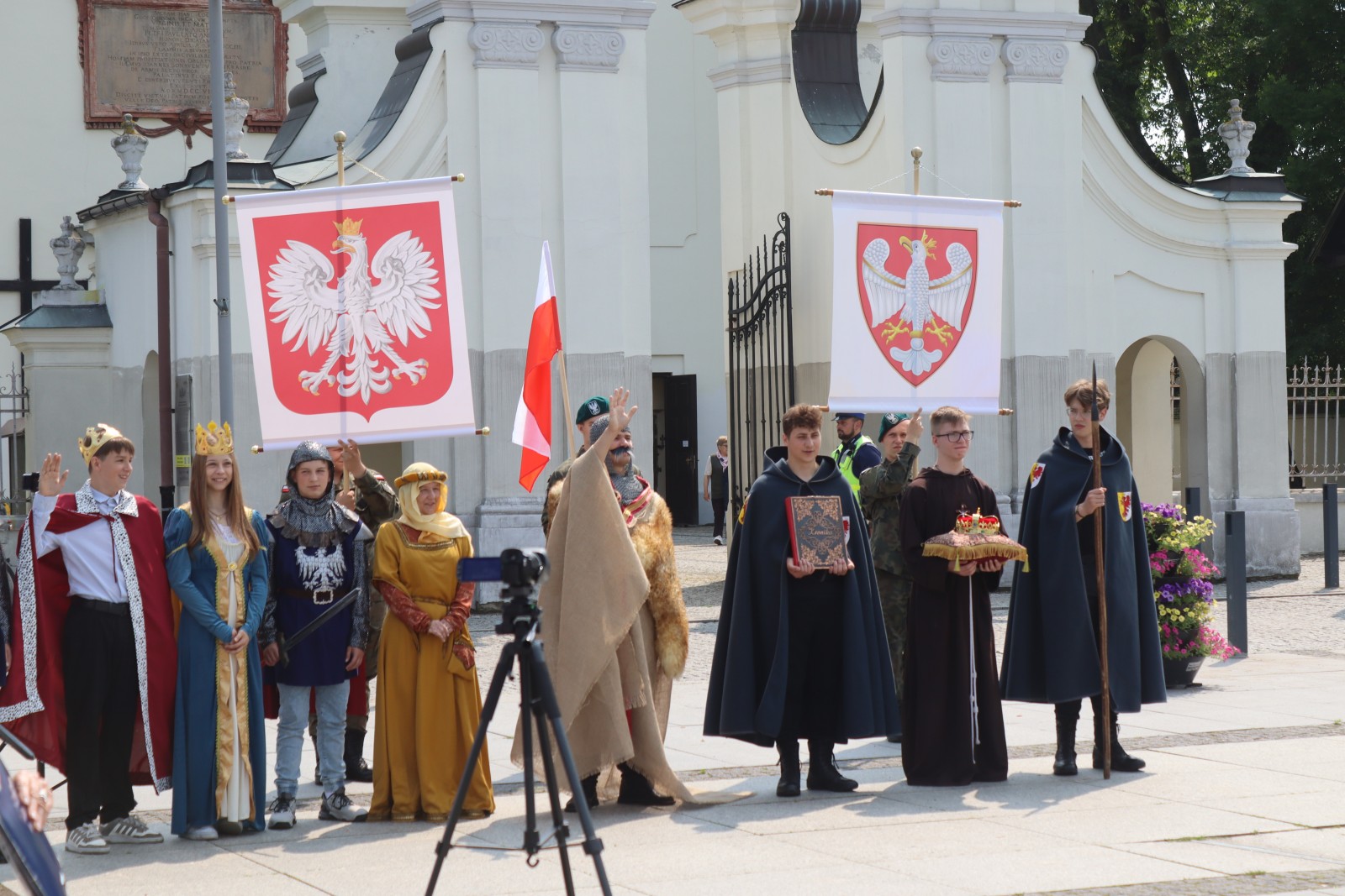 Orszak dotarł do Bazyliki Mniejszej, gdzie wszyscy uczestnicy otoczyli kościół. W tym wyjątkowym miejscu rozbrzmiała dumnie pieśń „Bogurodzica”. Następnie wszyscy przeszli na rynek, gdzie zostały przeczytane fragmenty Kroniki polskiej Galla Anonima oraz  zaśpiewana stara pieśń rycerska. Modlitwę za ojczyznę poprowadził ksiądz Przemysław Łoza. Na zakończenie wszyscy wspólnie odśpiewali hymn Polski, który uniósł się ponad miastem.